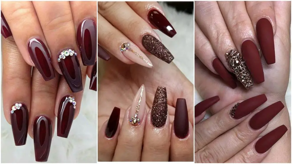 También Para Las Uñas Color Vino 2020, Podemos Recomendaros La Tendencia De Decorar Estas Con Algo Del Brillo Que Aporta El Glitter, Si Bien Este Es Tendencia.